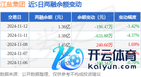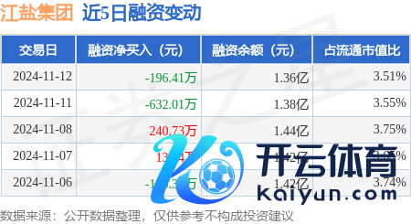 本站音讯kaiyun官方网站,11月12日,江盐集团(601065)融资买入1278.42万元,融资偿还1474.83万元,融资净卖出196.41万元,融资余额1.36亿元。