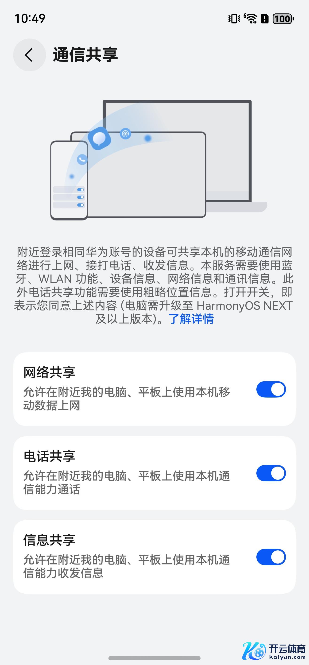 通讯分享是华为于2022年在鸿蒙3.0系统推出的一项培育互联功能,在登录疏浚华为账号的前提下,允许隔邻培育之间分享网罗结合、电话和短信办事。