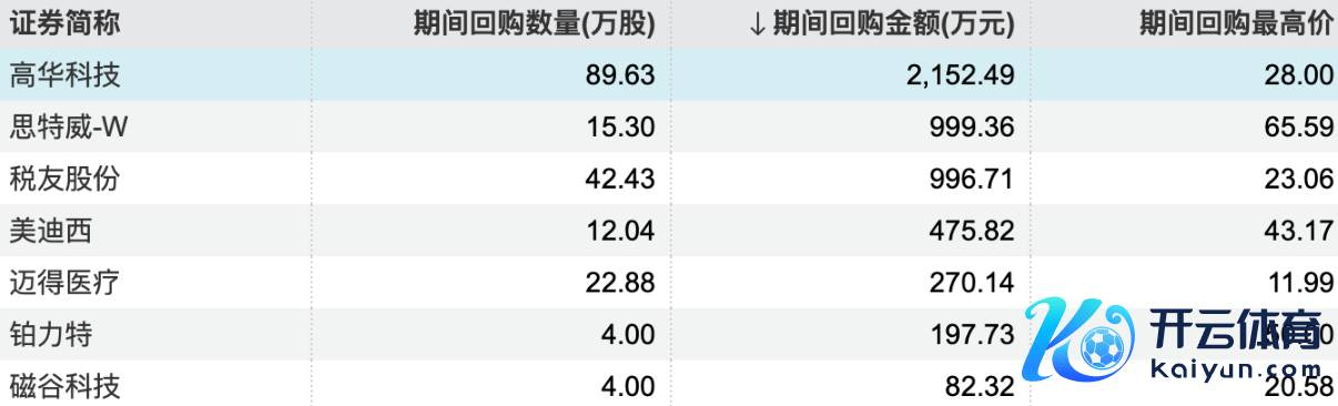 7家上市公司股票获回购,高华科技回购金额最高7家上市公司股票获回购,高华科技回购金额最高