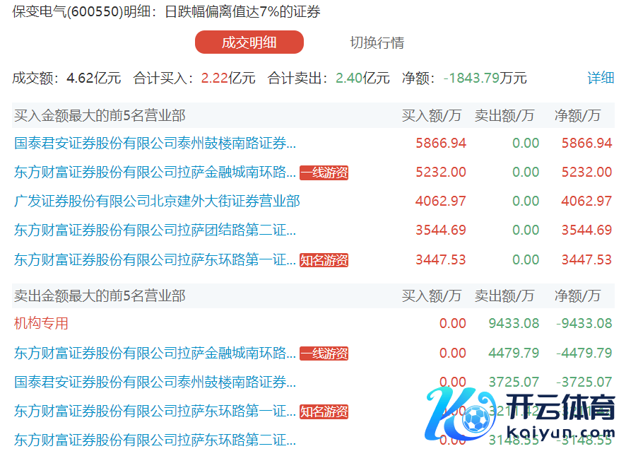 保变电气本日跌停 一机构专用席位净卖出9433.08万元kaiyun中国官方网站保变电气本日跌停 一机构专用席位净卖出9433.08万元
